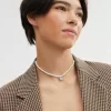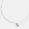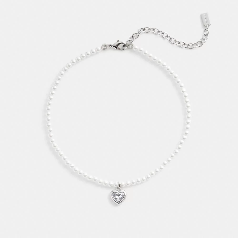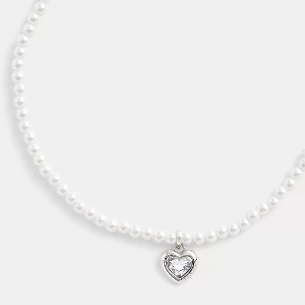 Coach Women Jewelry Heart Pearl Choker Necklace Silver & Clear
