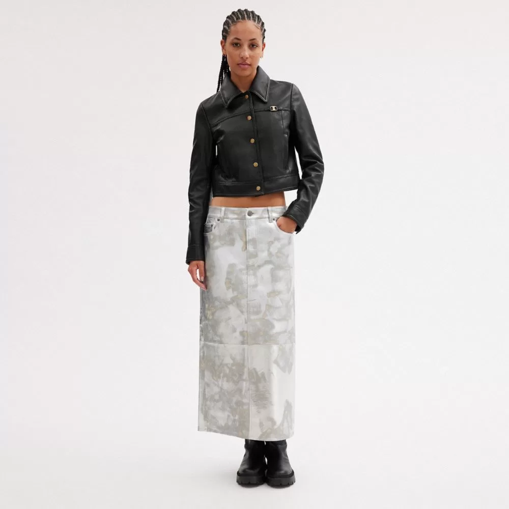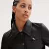 Detailed with Heritage C Plaque, this fitted shrunken jacket is crafted of soft supple leather. The boxy, slightly cropped silhouette is finished with a traditional pointed collar, slip pockets and snap buttons.