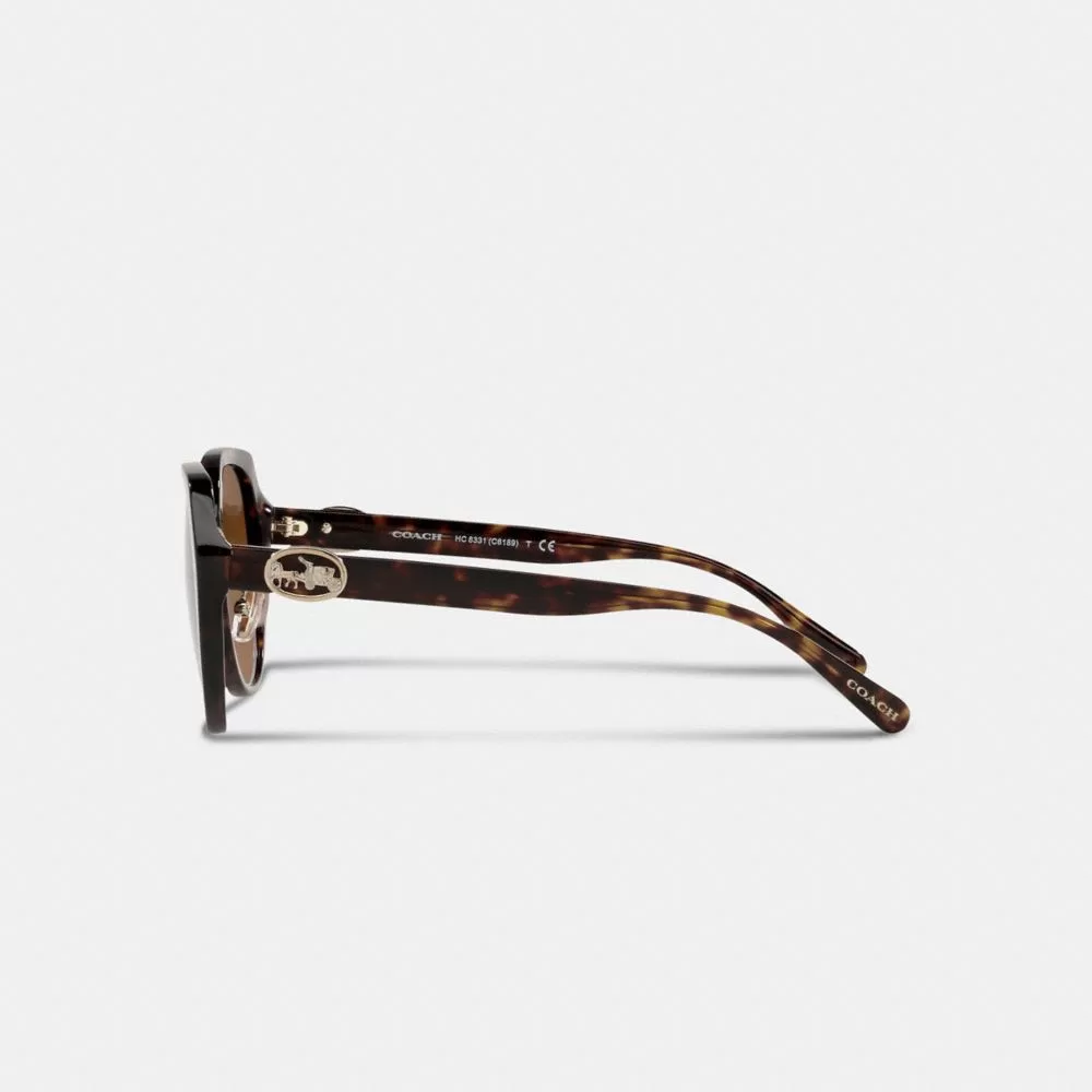 Coach Women Eyewear Horse And Carriage Oversized Round Sunglasses DARK TORTOISE