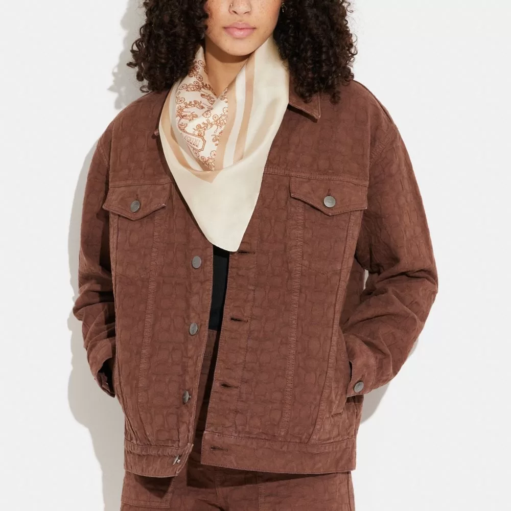 Coach Horse And Carriage Print Silk Square Scarf Women White