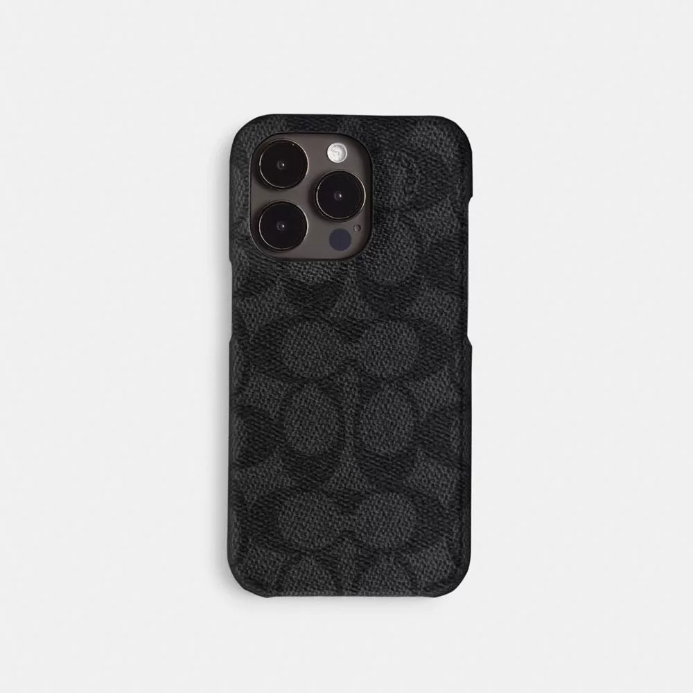 Coach Iphone 15 Pro Case In Signature Canvas Travel Bag Women Grey