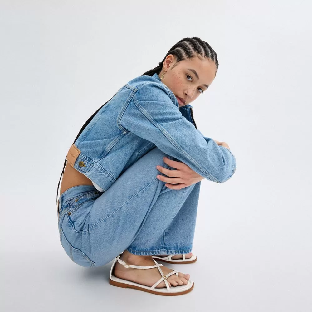 Our polished Heritage C Plaque adds an iconic touch to this strappy smooth leather Jenni sandal. Finished with an ankle-wrap buckle closure, the flat warm weather style features a padded footbed for day-to-night comfort.