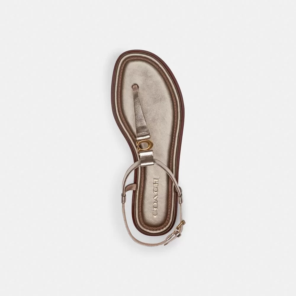 A classic style made for warm weather days and nights, our Jessica sandal is crafted of smooth metallic leather detailed with our polished signature on the thong strap. The sleek silhouette is finished with an ankle-wrap buckle closure and a padded footbed for comfort and walkability.