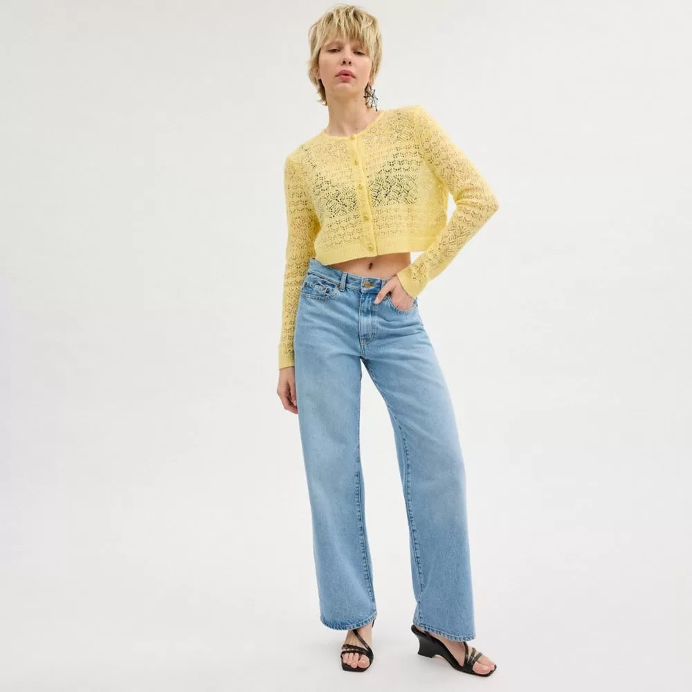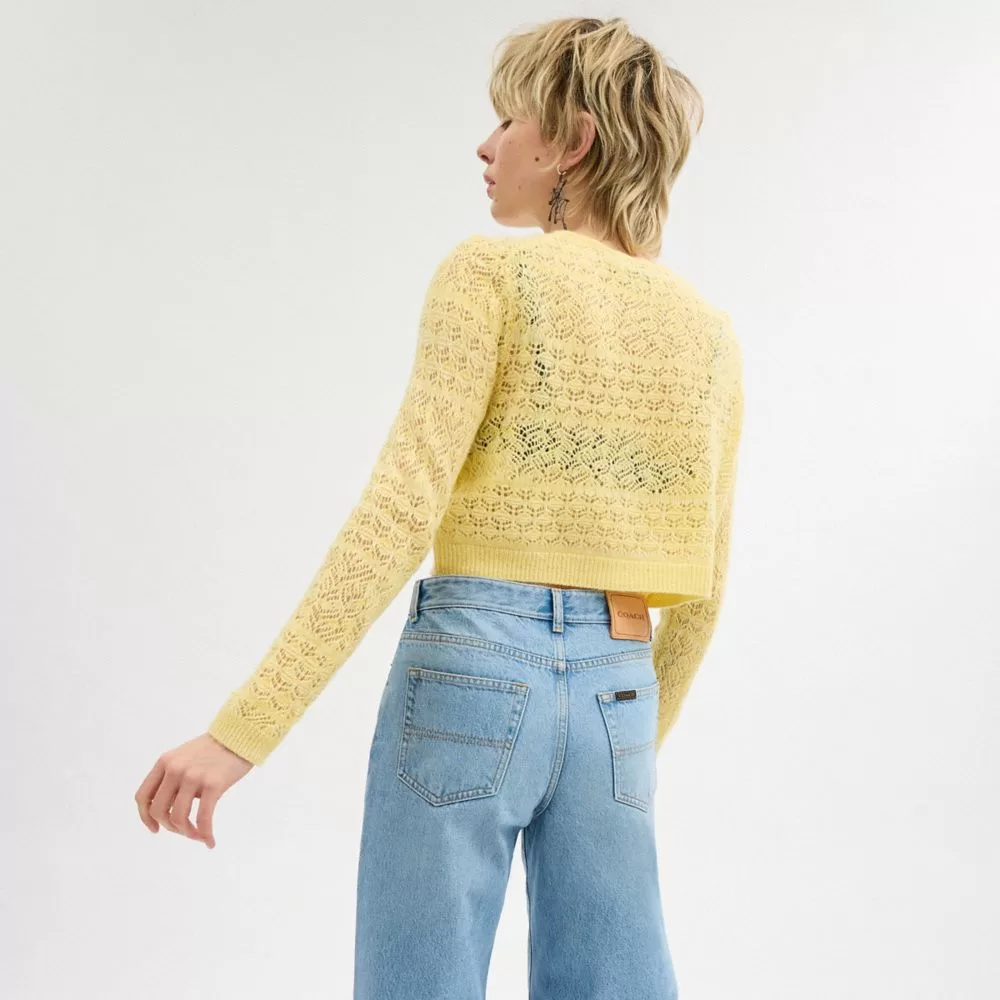 Coach Women Tops Lace Knit Cardigan Yellow