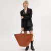 A modern twist on classic market basket bags, our large sculptured tote is an effortlessly sophisticated style. Featuring a removable pouch to hold small essentials, the generously-sized, minimalist style is crafted of vegetable-tanned leather in a nod to our legacy of leathercraft.