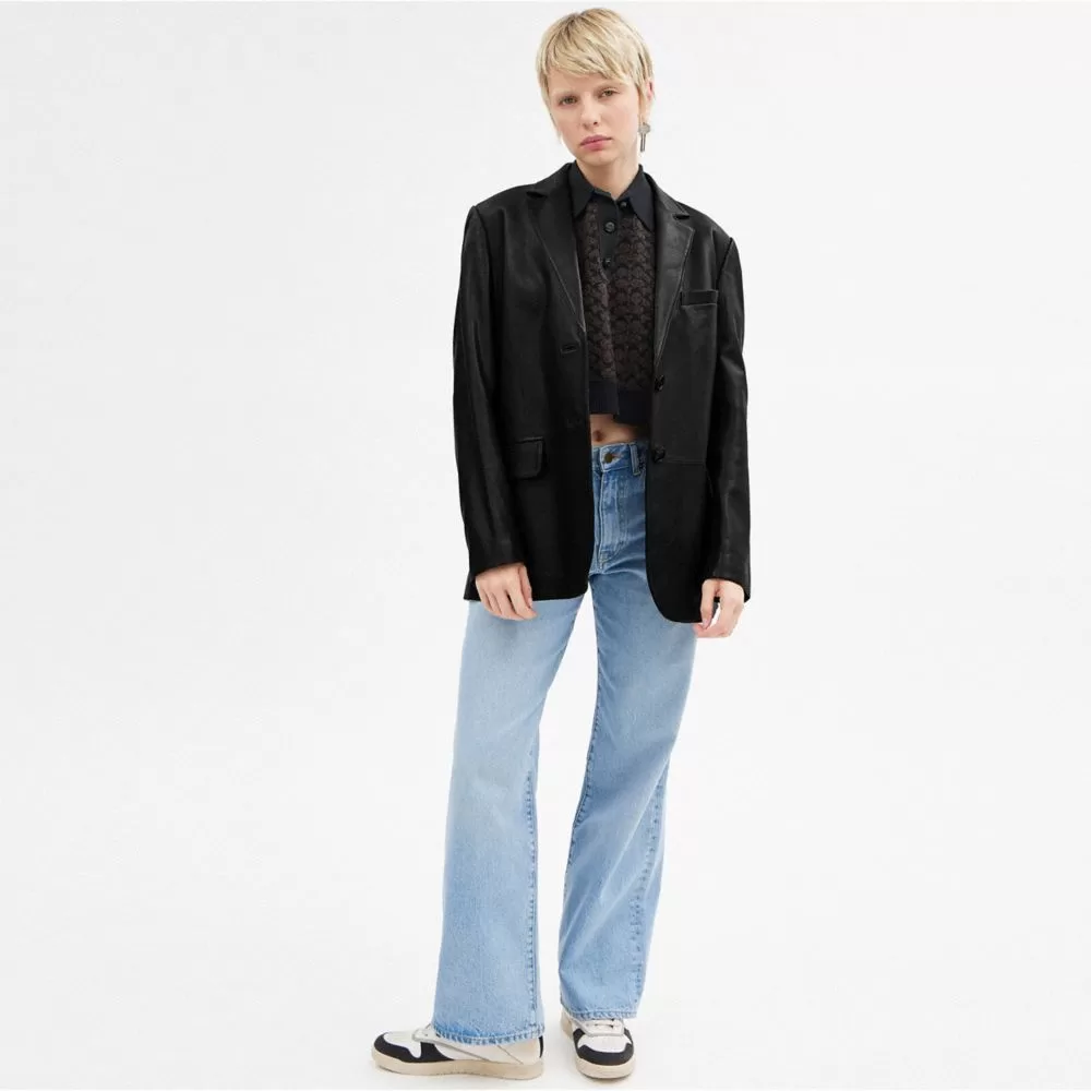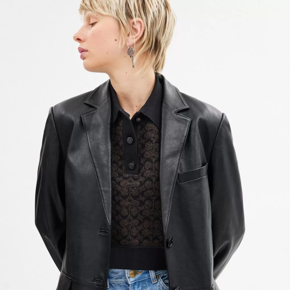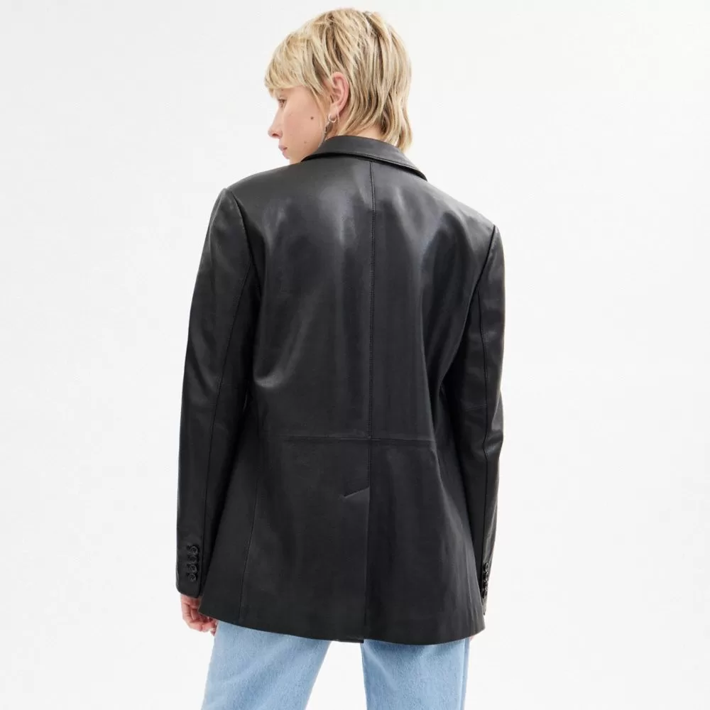 Coach Leather Blazer Jackets Women Black