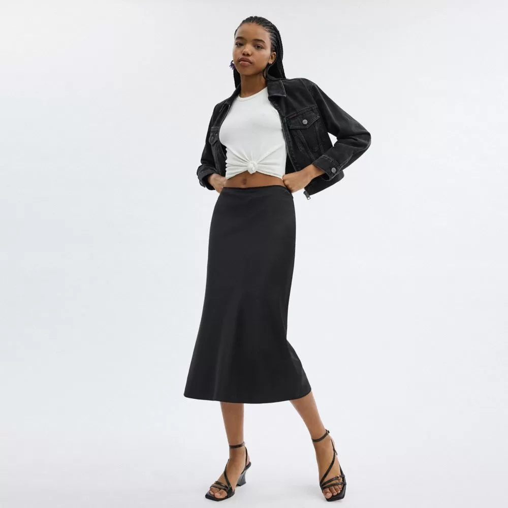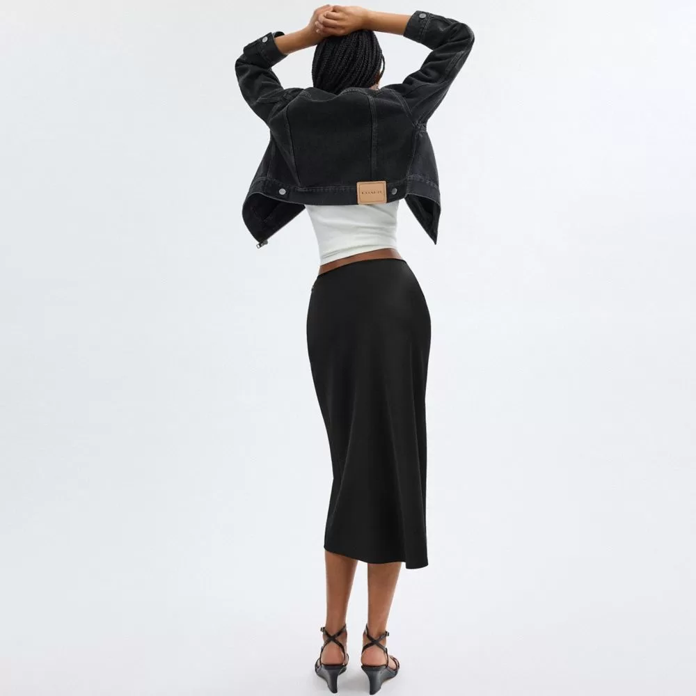 Coach Women Bottoms Long Satin Midi Skirt Black