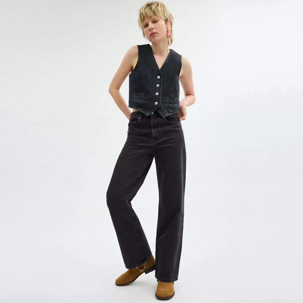 Coach Women Bottoms Loose Fit Jeans In Organic Cotton Black