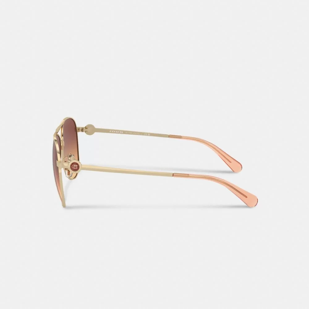 A timeless look. These lightweight metal sunglasses are a modern take on the iconic pilot style. The temples are finished with archival Coach hardware inspired by Bonnie Cashin, Coach’s first head designer.