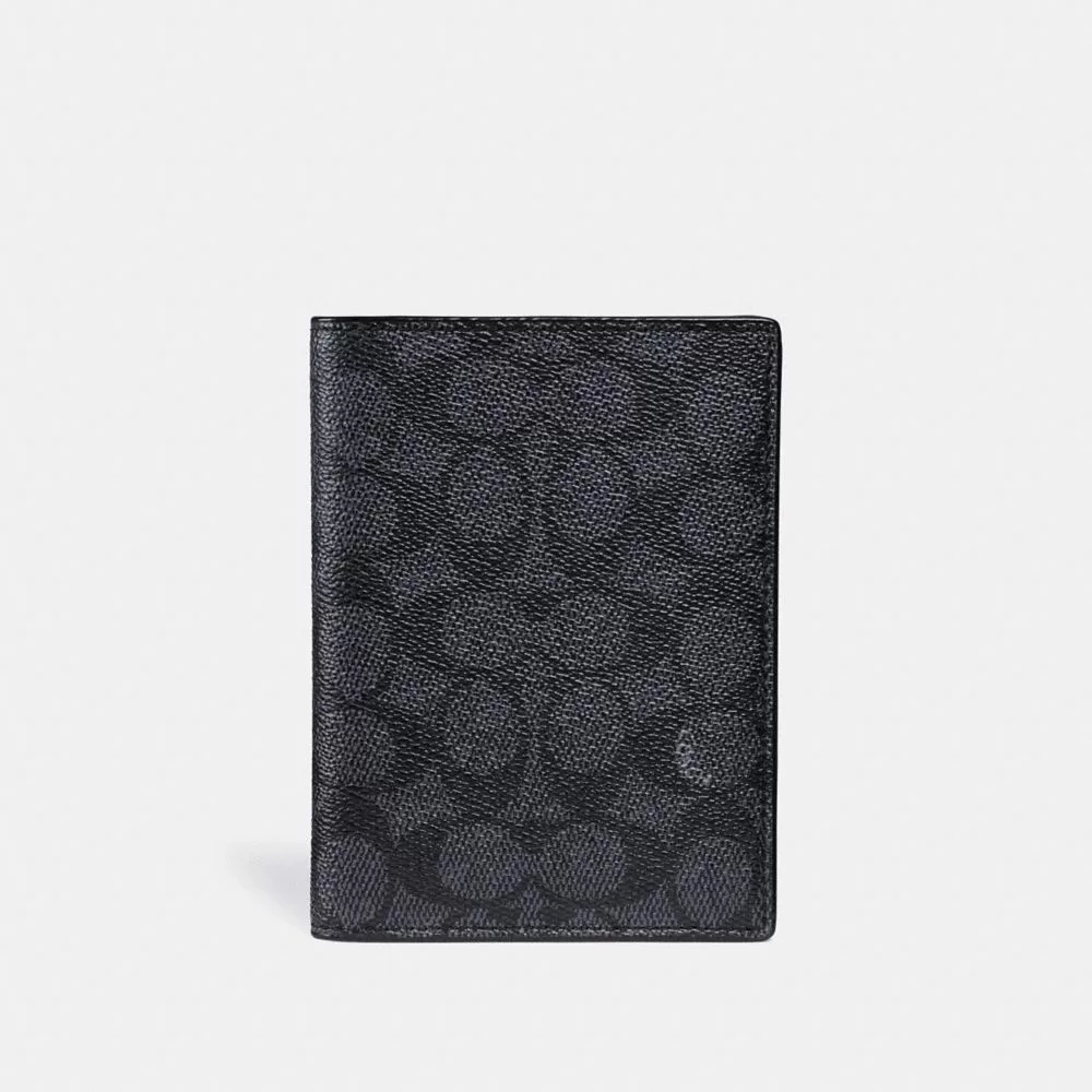 Coach Women Tech & Travel Passport Case In Signature Canvas Charcoal