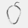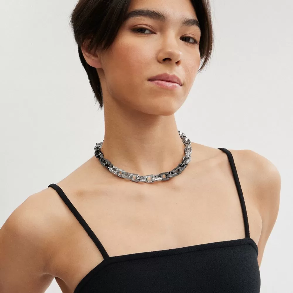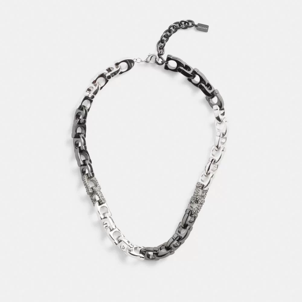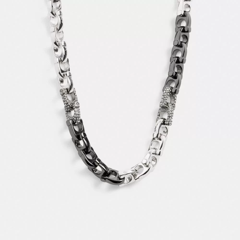 Coach Pave Signature Mixed Chain Necklace Jewelry Women Silver