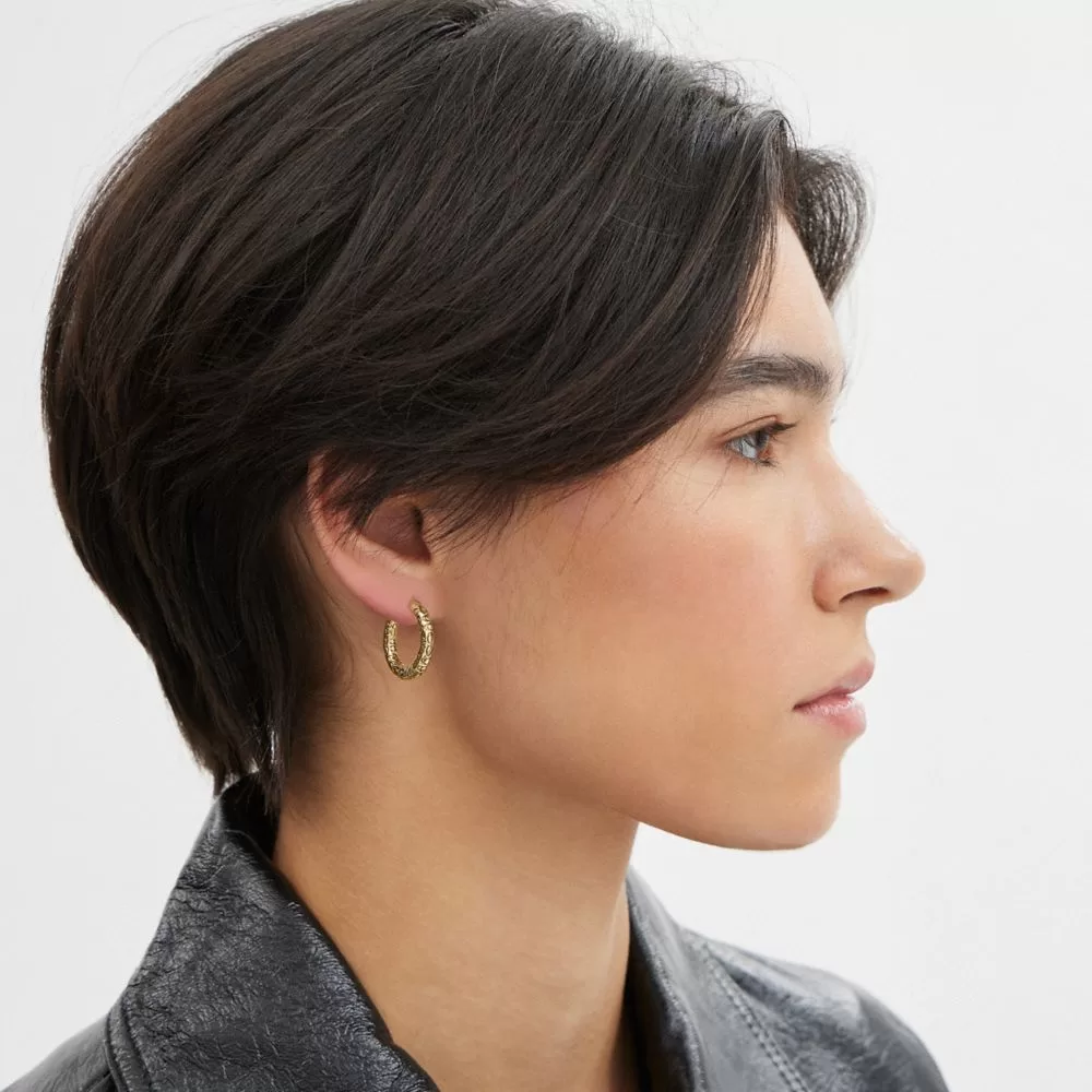 Coach Quilted Signature Medium Hoop Earrings Jewelry Women Gold