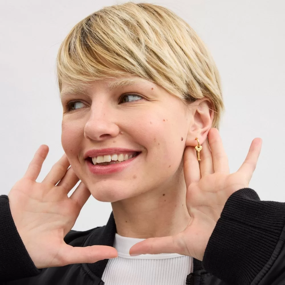 Coach Women Jewelry Rainbow Quilted Padlock Key Mismatch Earrings Gold/Multi