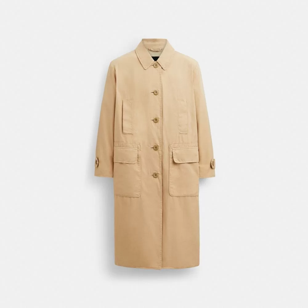 Coach Women Jackets & Outerwear Regenerative Cotton Balmacaan Light Khaki