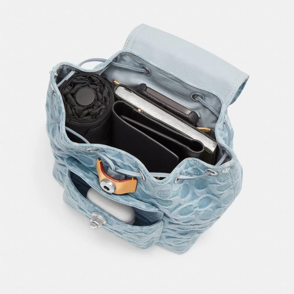 Coach Women Backpacks Riya Backpack 21 In Signature Denim denim/Brass/Blue