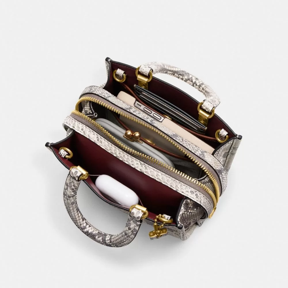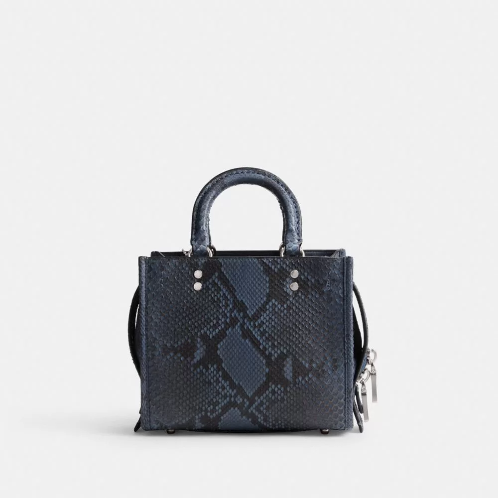 Coach Rogue 20 In Python Satchel Bag Women Silver Dark Blue