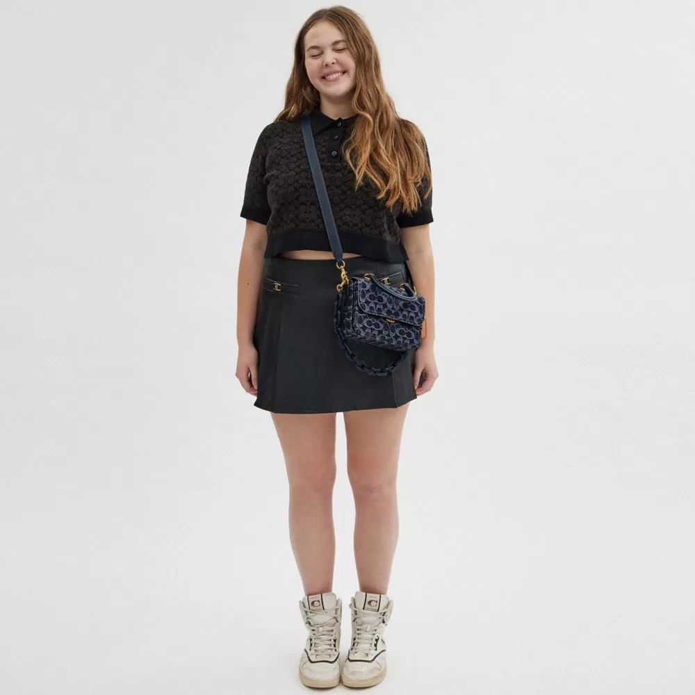 Inspired by free spirits, rebels and dreamers, the aptly named Rogue is a go-anywhere bag. This petite addition to the Rogue family can be carried by the top handle, worn as a short shoulder bag with the elegant leather-covered chain strap or crossbody with the long detachable strap. Perfectly organized with four compartments and a convenient outside slip pocket for easy access to essentials, the versatile style features glovetanned leather details and signature denim crafted of certified organic cotton made without the use of harmful chemical fertilizers and pesticides. It reflects our ongoing commitment to helping reduce our impact on the planet.