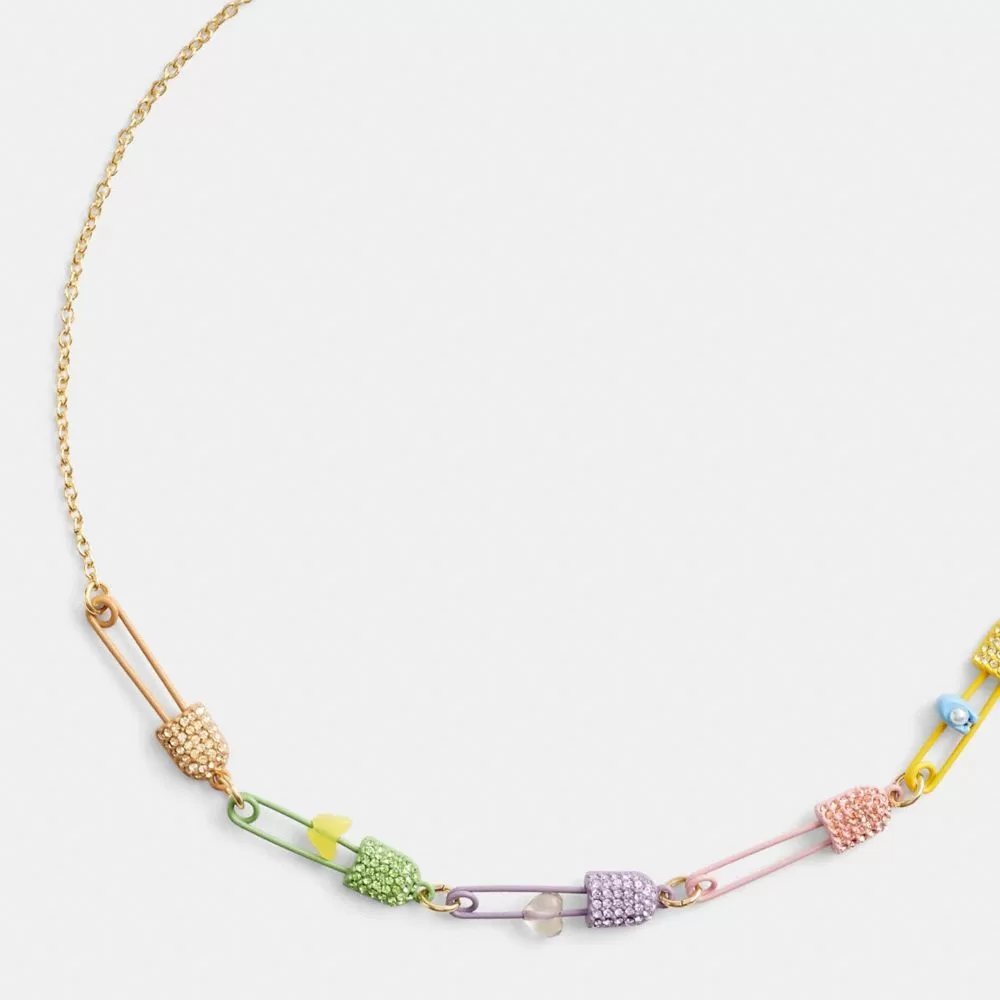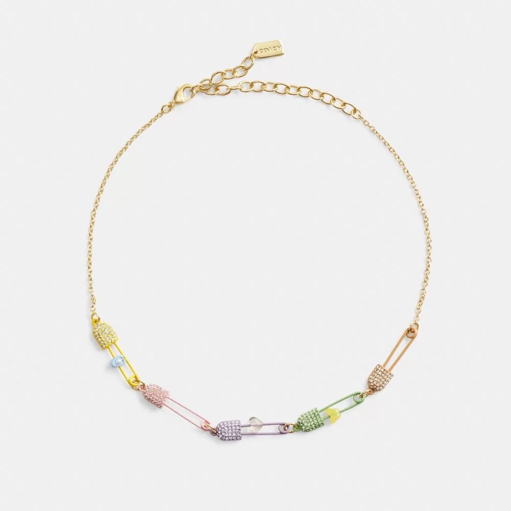 Coach Women Jewelry Safety Pin Charm Link Choker Necklace Gold/Multi