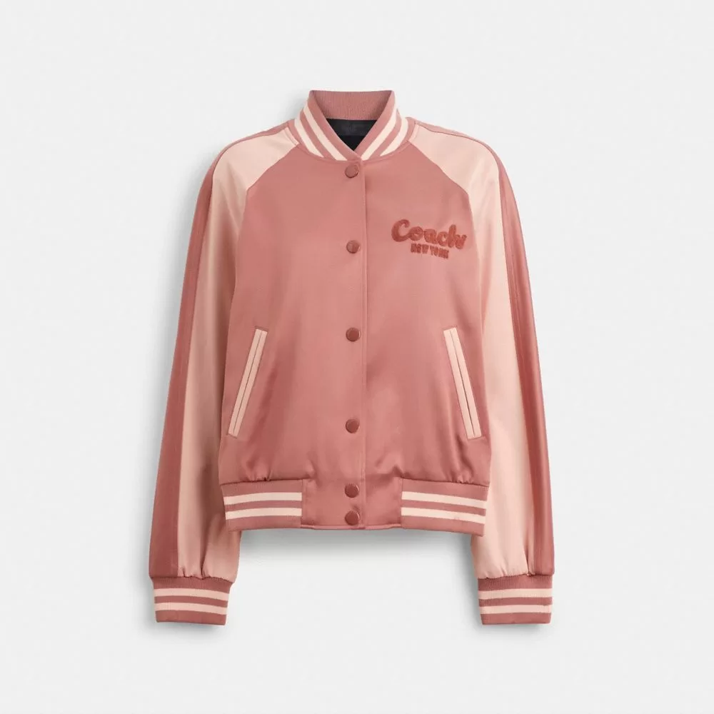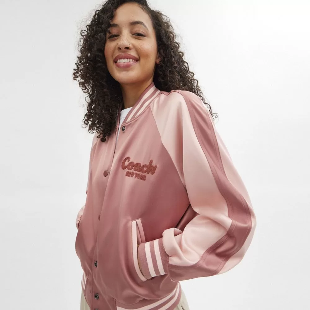 Coach Women Jackets & Outerwear Satin Varsity Jacket Pink