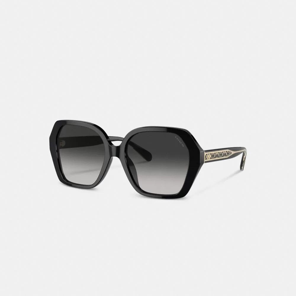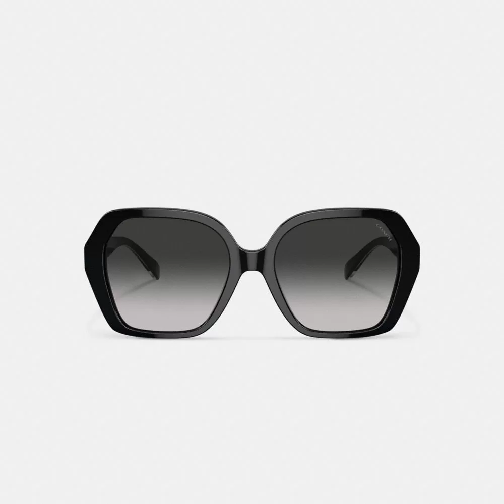 Coach Women Eyewear Signature Ombre Geometric Square Sunglasses Gray Gradient