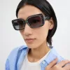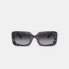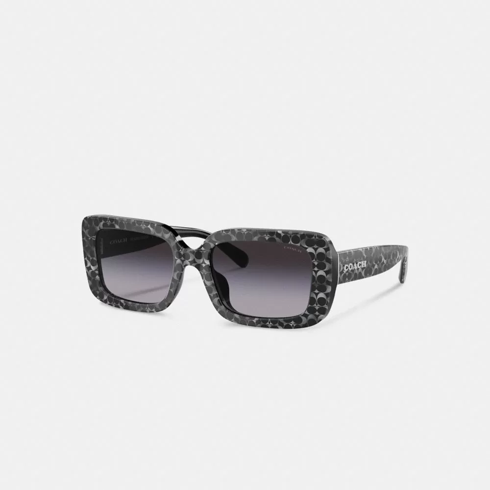 Coach Women Eyewear Signature Oversized Rectangle Sunglasses Silver Pearlized Signature