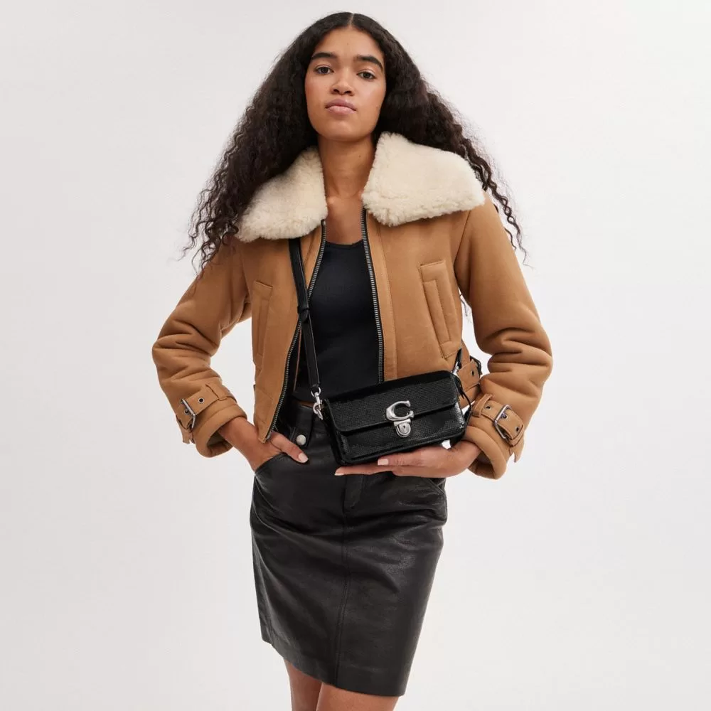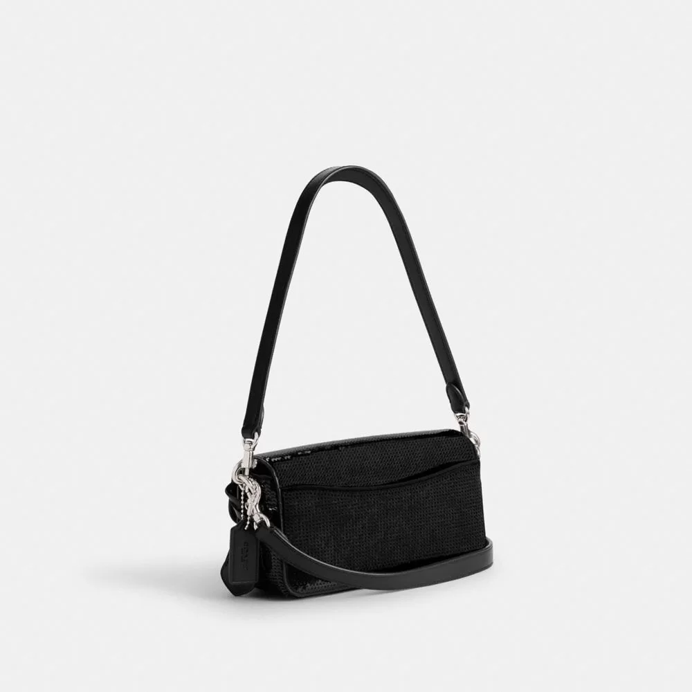 Coach Women Crossbody Bags Studio Baguette Bag With Sequins calf leather/Silver/Black