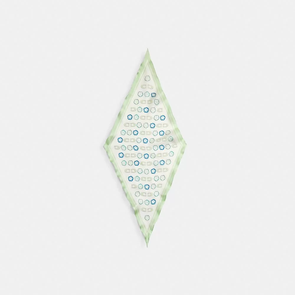 Coach Women Hats Scarves & Gloves Tea Rose Print Silk Diamond Scarf Pale Pistachio