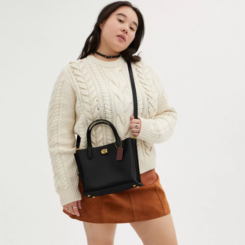 Not too big, not too small, Willow is the perfect carry-it-all tote with space for all of your day-to-day essentials. Crafted of polished pebble leather, the 24 features two open pockets, a secure center zip compartment and our signature turnlock closure. Carry it by the top handles or wear on the shoulder and crossbody with the detachable strap.