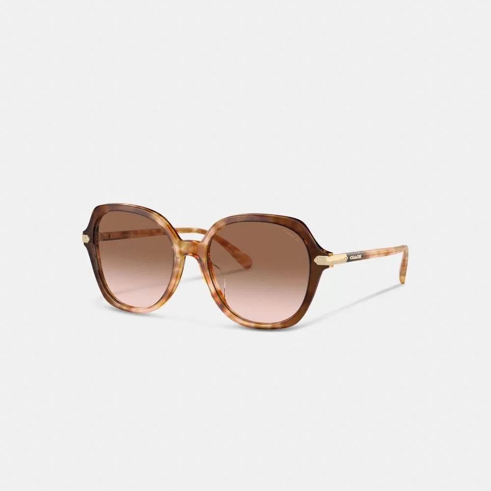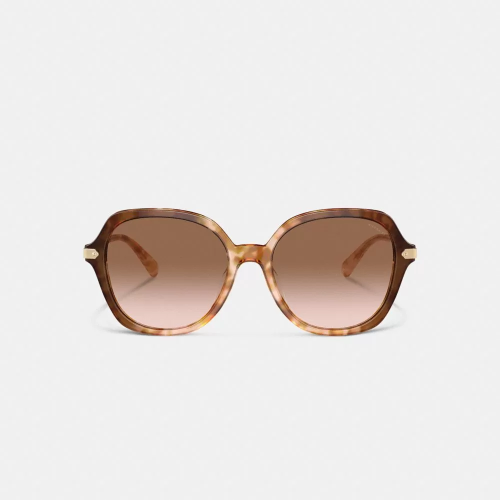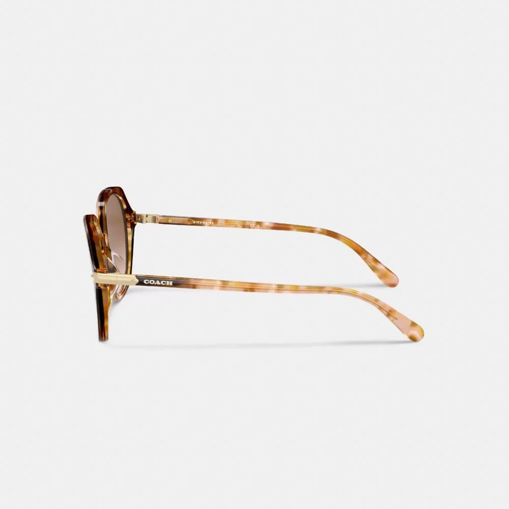 Coach Women Eyewear Wrap Around Hangtag Oversized Geometric Round Sunglasses Honey Tortoise